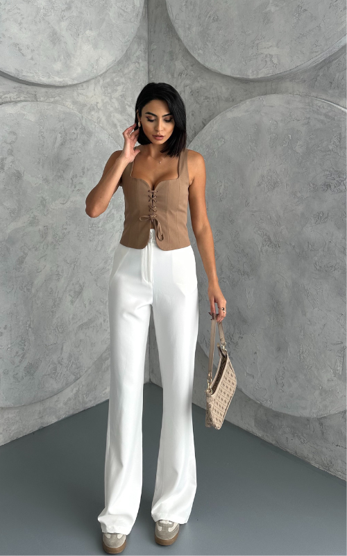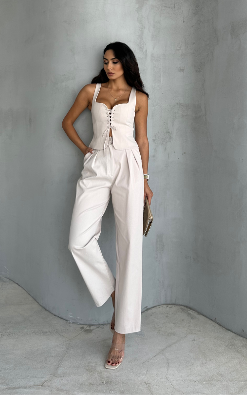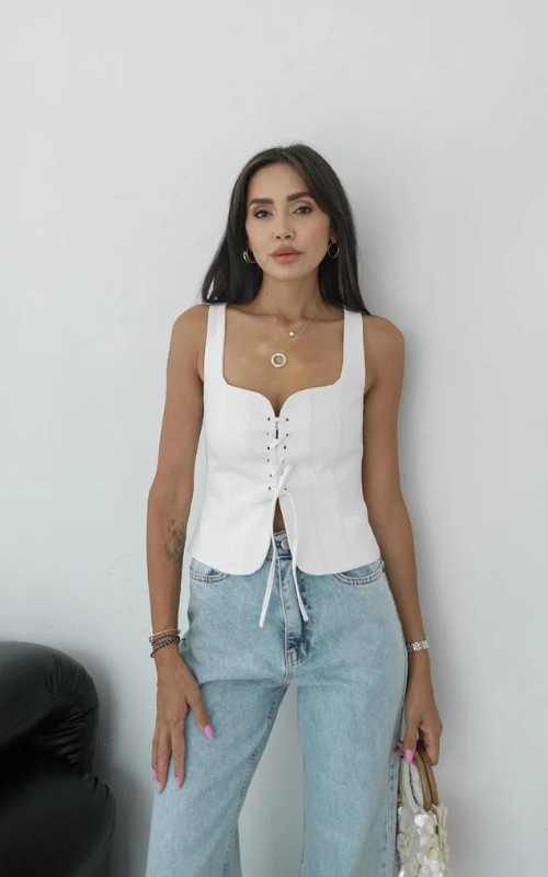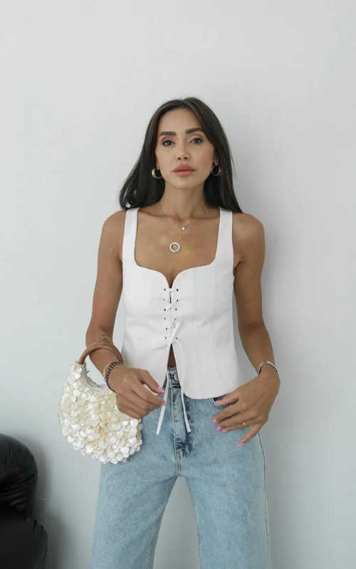 The Bella Sweetheart Top features a flattering sweetheart neckline with adjustable ties at the front. This stylish top offers a perfect blend of elegance and comfort, making it ideal for any occasion.