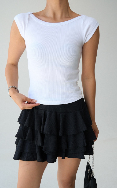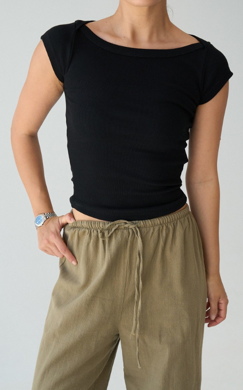 The BodyFlex Top features a flattering wide neckline and cap sleeves that gently hug the shoulders. Its form-fitting silhouette adds a polished touch to casual looks.