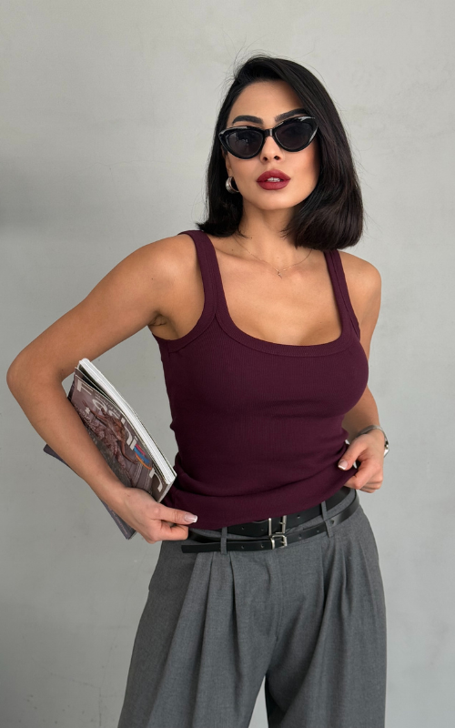 The Cali Top features a scoop neckline and a subtle trim around the armholes, offering a sleek and comfortable look with added detail. Perfect for layering or wearing on its own.