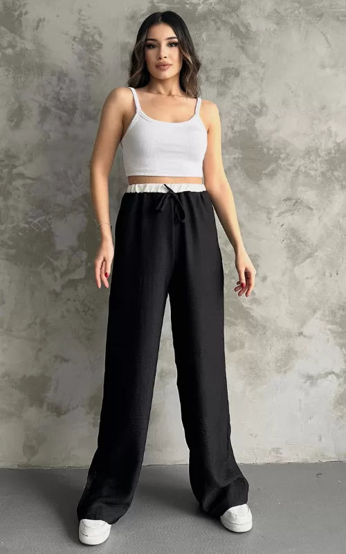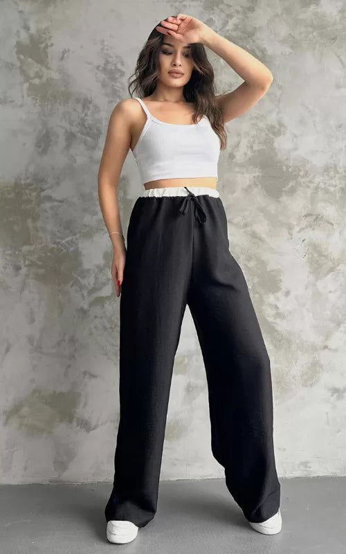Embrace ultimate comfort with the Cozy Haven Pants, featuring an extra white elastic waistband for a perfect, snug fit with a touch of flair.