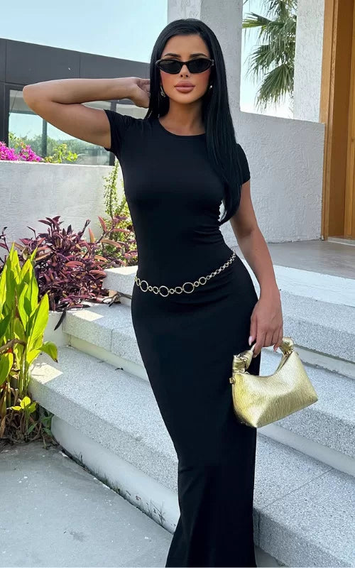Drape yourself in timeless elegance with Emily, a chic short sleeved maxi dress that offers both style and ease.