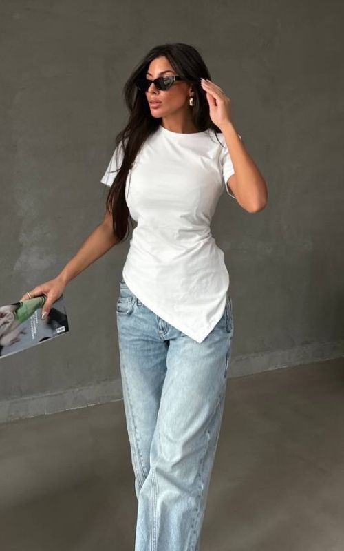 Our Emma Top is here to the style rescue! Featuring a classic round neckline, an eye-catching asymmetric cut that highlights your figure and a soft, breathable fabric.