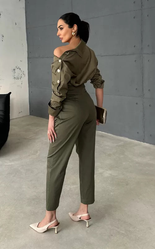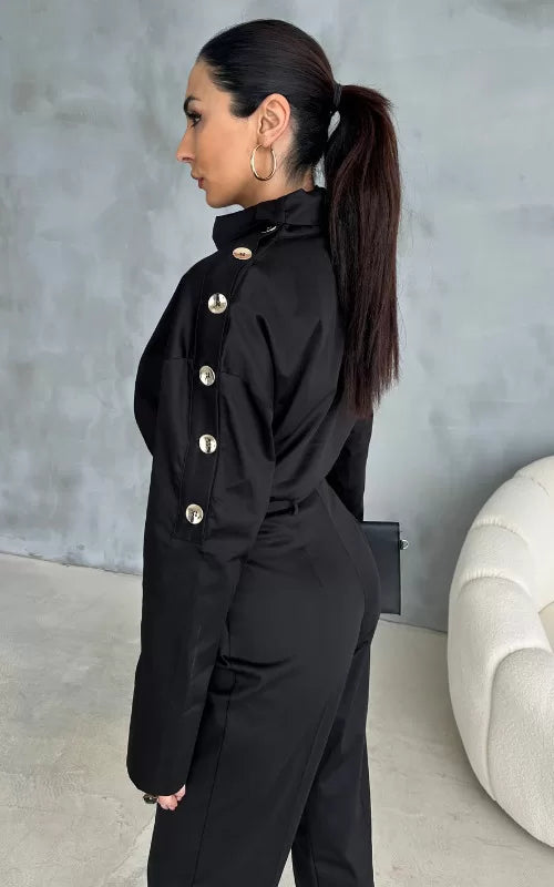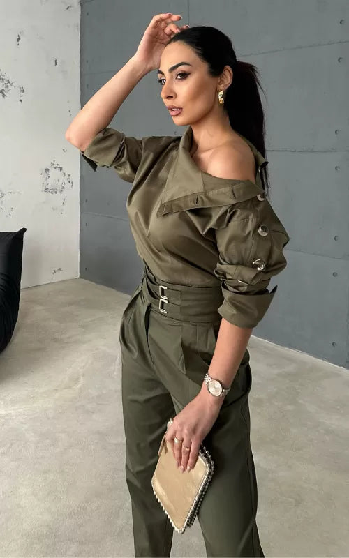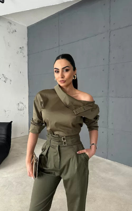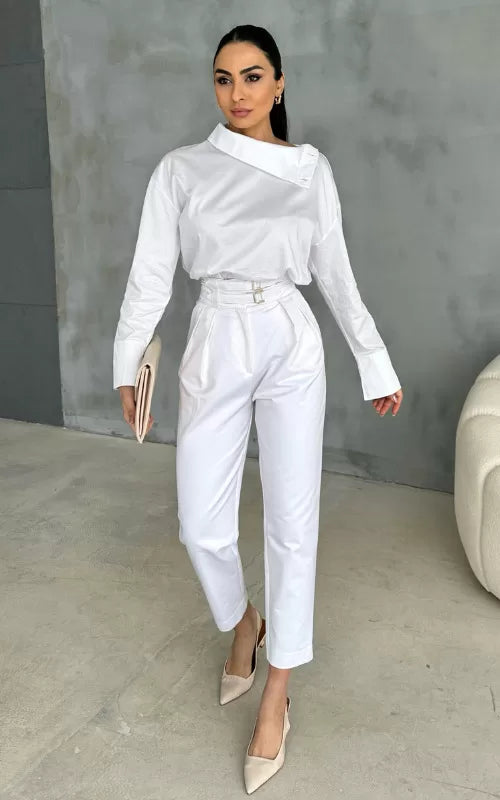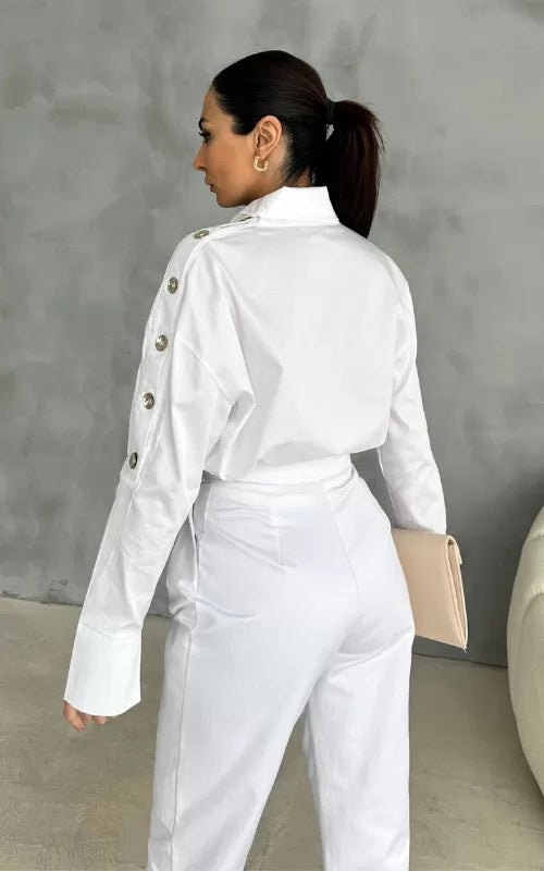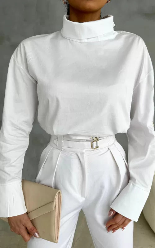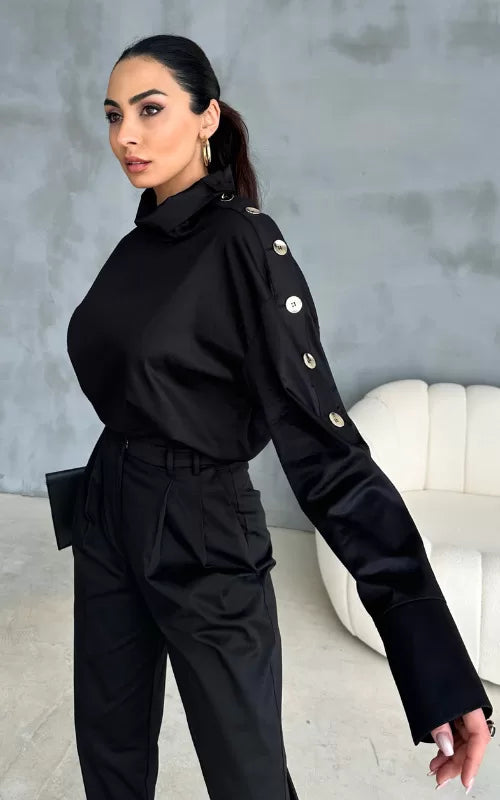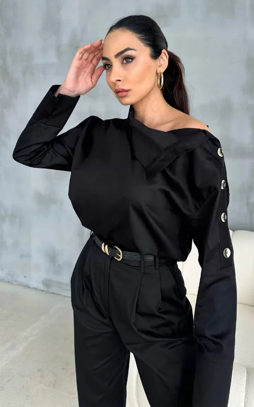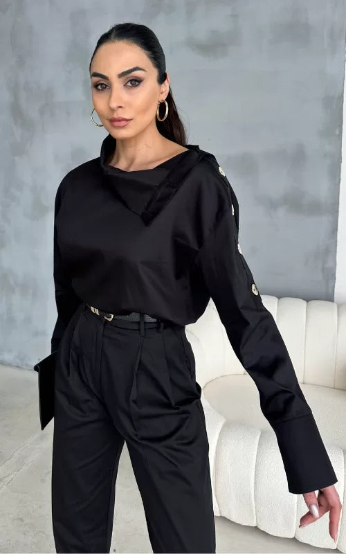 Our Empress Top effortlessly adapts to your mood and occasion, it features an inclined neck that you can style as per your unique taste and timeless buttoned sleeves.
