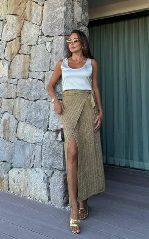 Make a statement with our flattering Fearless Skirt, made of premium knit fabric, its wrap, tie-up detail never goes out of style.