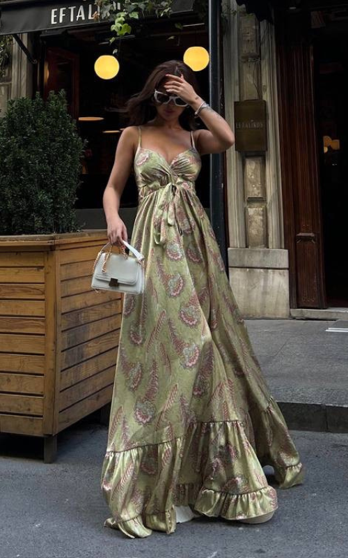 Capture the essence of romance with our Havana Dress. This satin-blend dress features slim shoulder straps, elegant print and a plunging neckline.