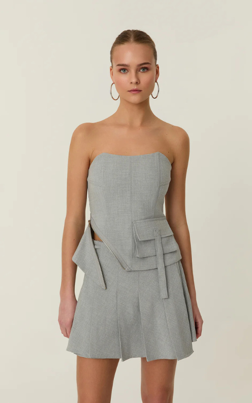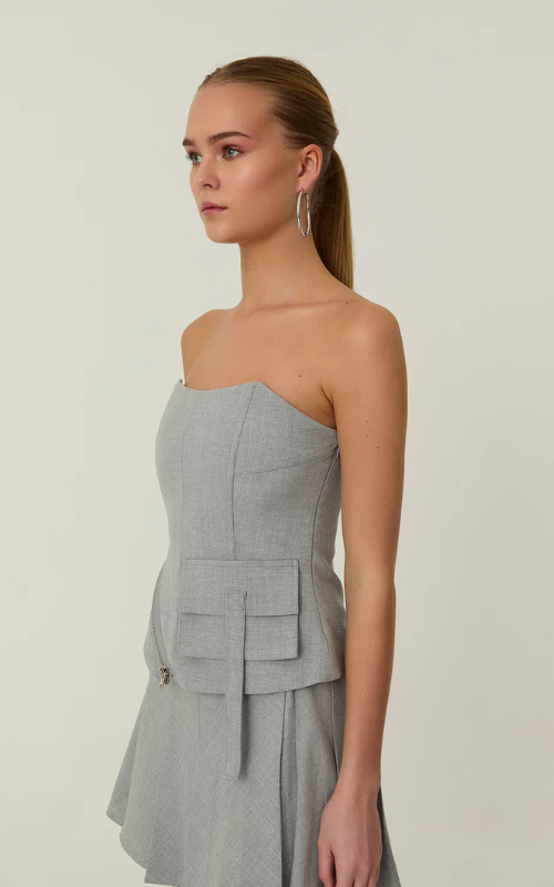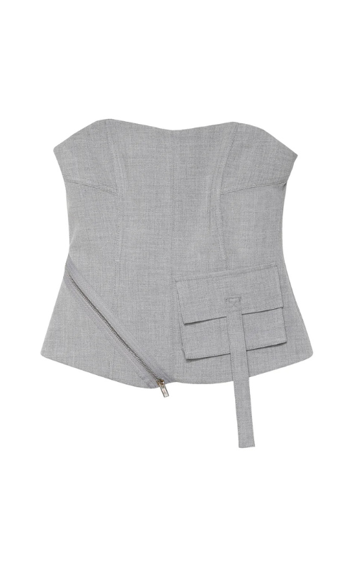 Our Jazz Crop Top is made from premium fabric and features a stylish pocket on the left front side and zipper detail, adding a flattering touch. Its strapless design completes the sleek, modern look.