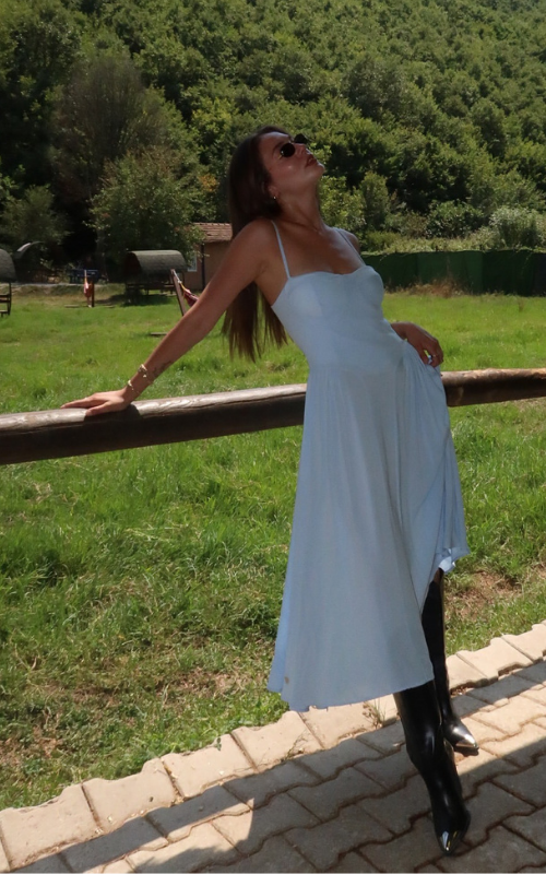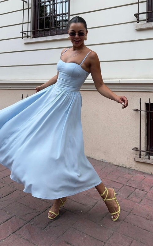 Standout this summer with our Laila dress, featuring a fitted bodice that highlights your waist, spaghetti straps and casual yet ultra chic length.