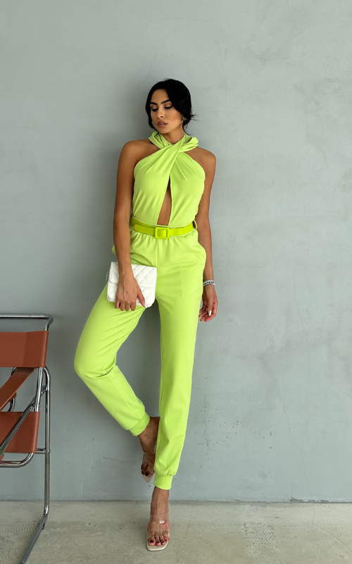 Turn heads in our Lime Set, it features a twisted halter neckline with a front cut-out. The belted waist enhances your figure, while the tapered jogger-style pants with cuffed hems keep the vibe trendy and relaxed.