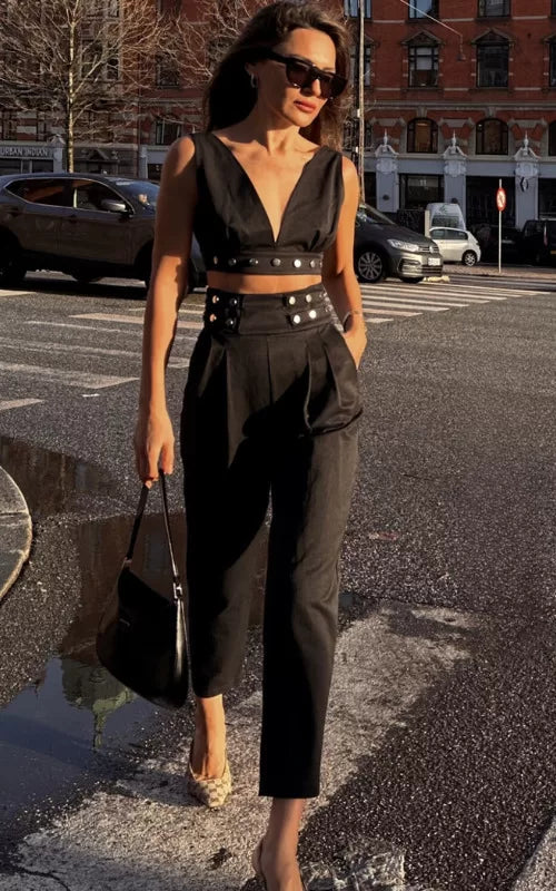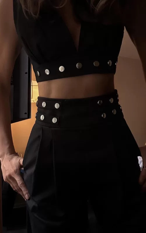 Introducing our Mannequin Pants, a well-crafted high-rise tapered cut pants with a flattering button-adorned waistband and two chic pockets on the sides.