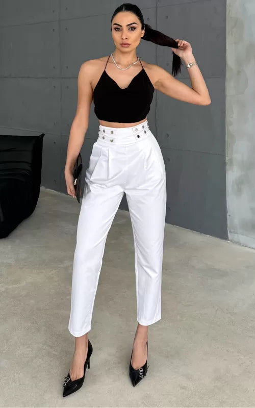 Introducing our Mannequin Pants, a well-crafted high-rise tapered cut pants with a flattering button-adorned waistband and two chic pockets on the sides.