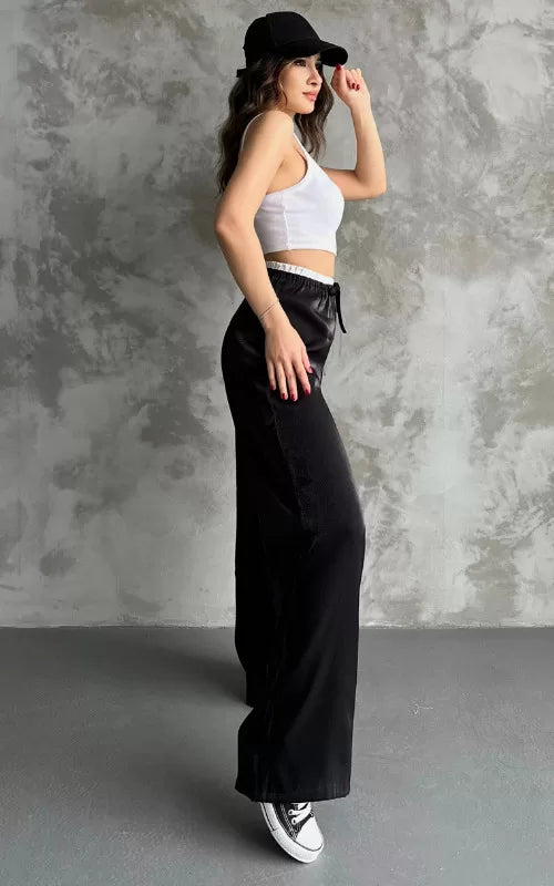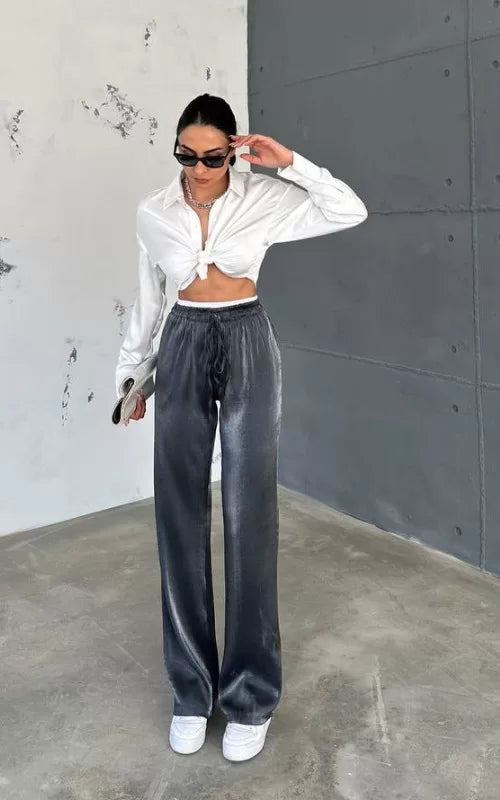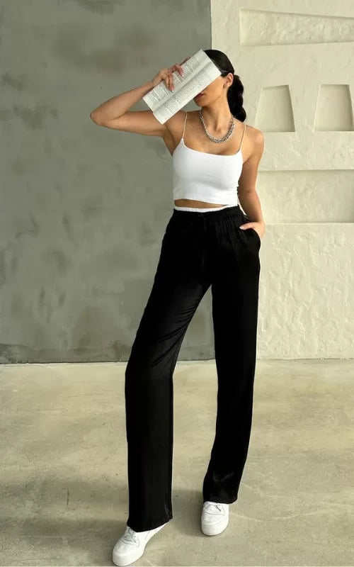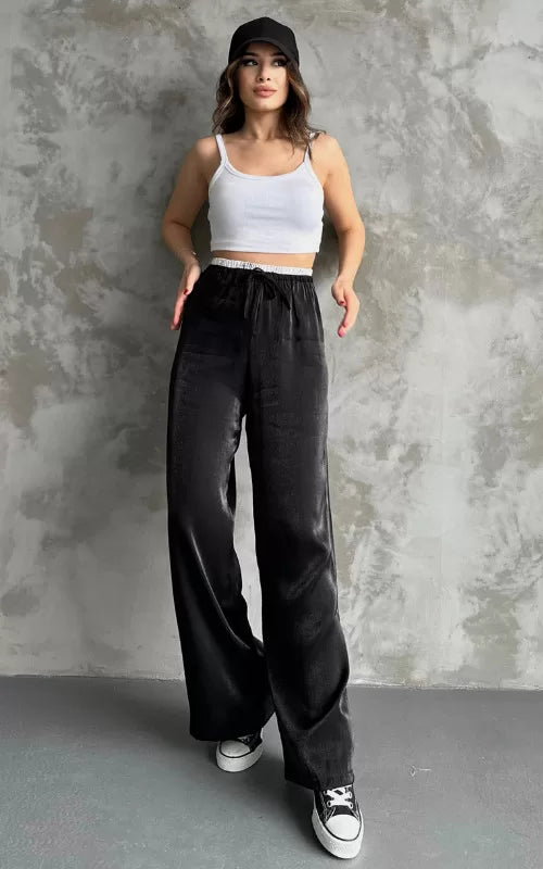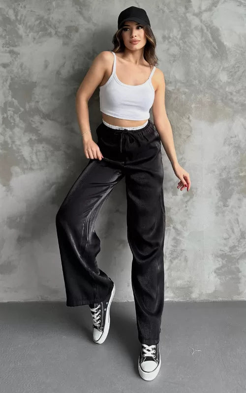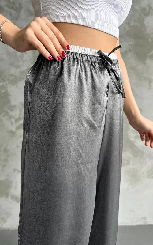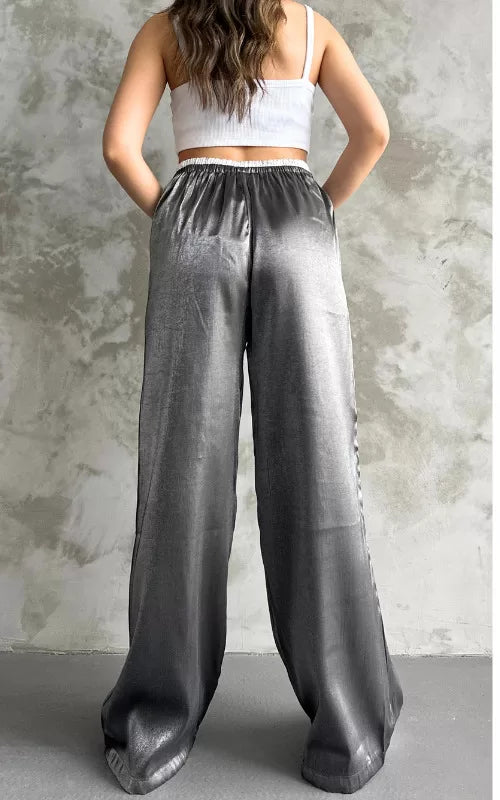 Embrace ultimate comfort with the Metallic Pants, featuring an extra white elastic waistband for a perfect, snug fit with a touch of flair.
