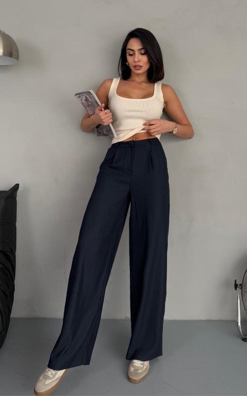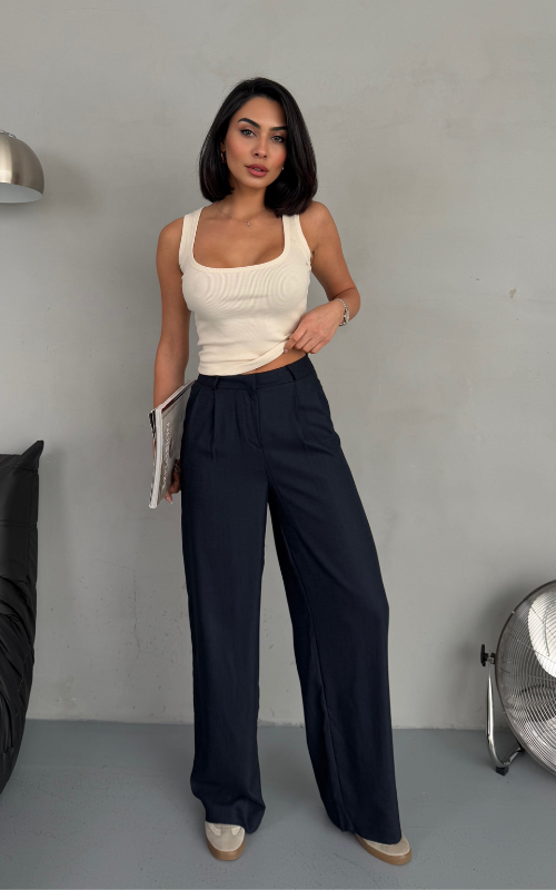 Our Misty Pants features a straight-cut design, sharp crease on the upper front, and belt loops for added versatility that’s perfect for polished looks.
