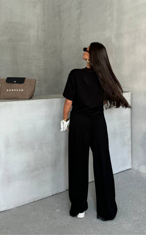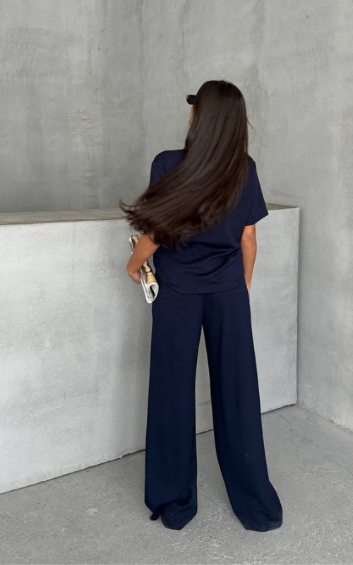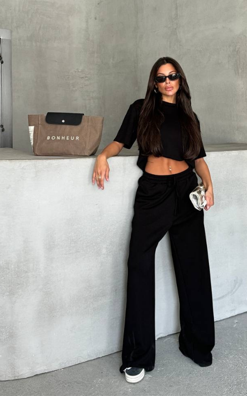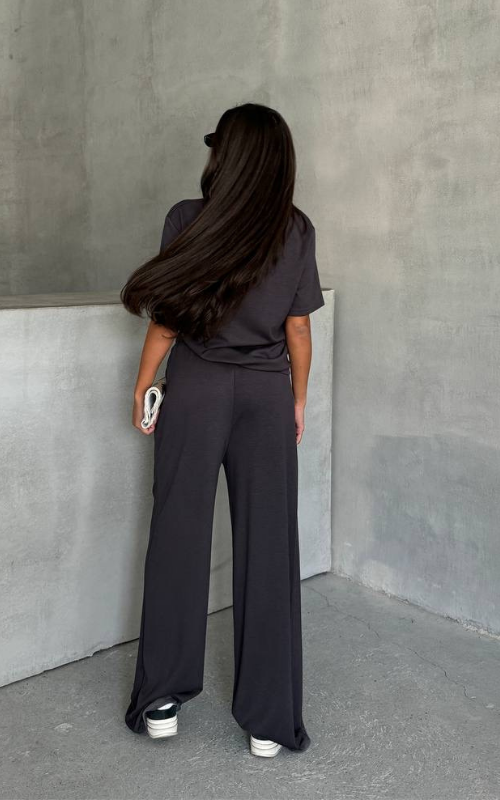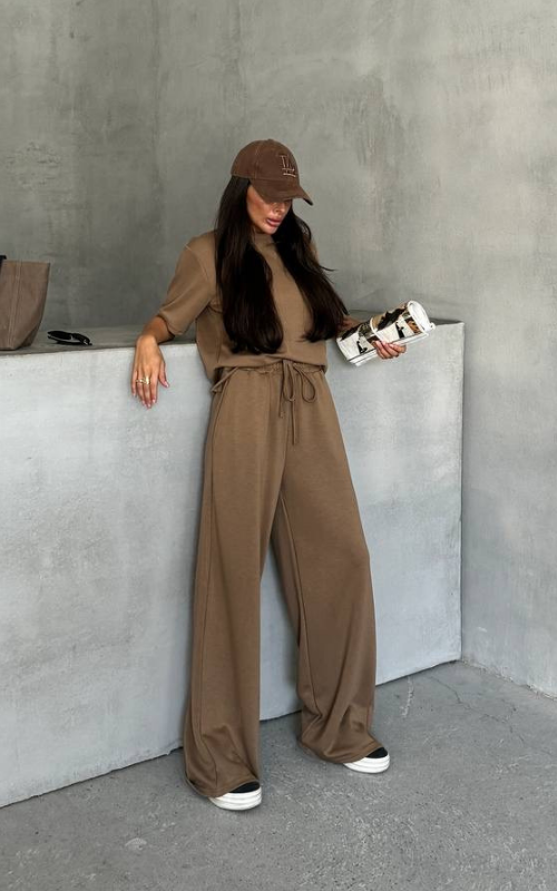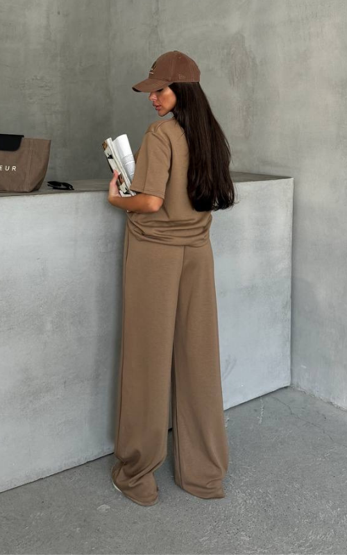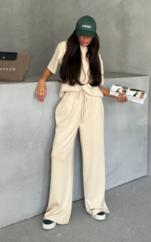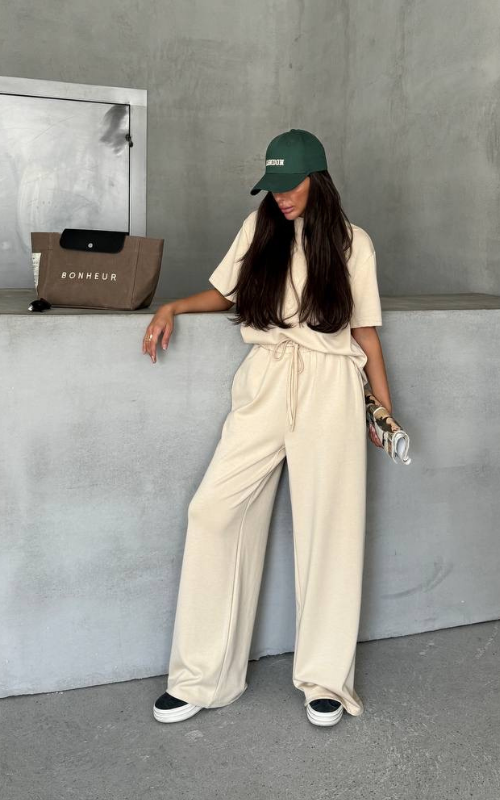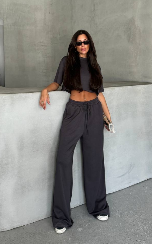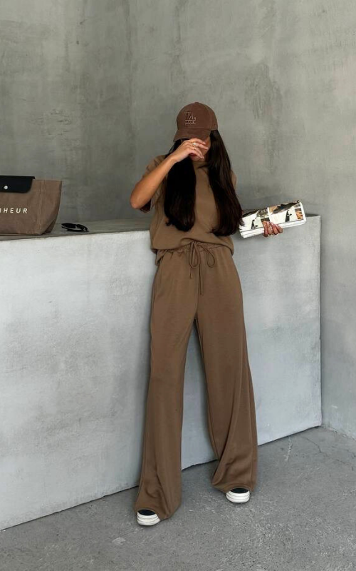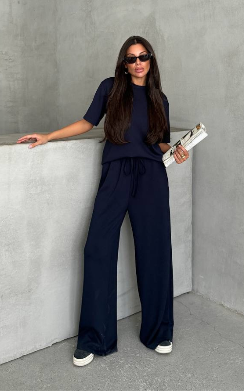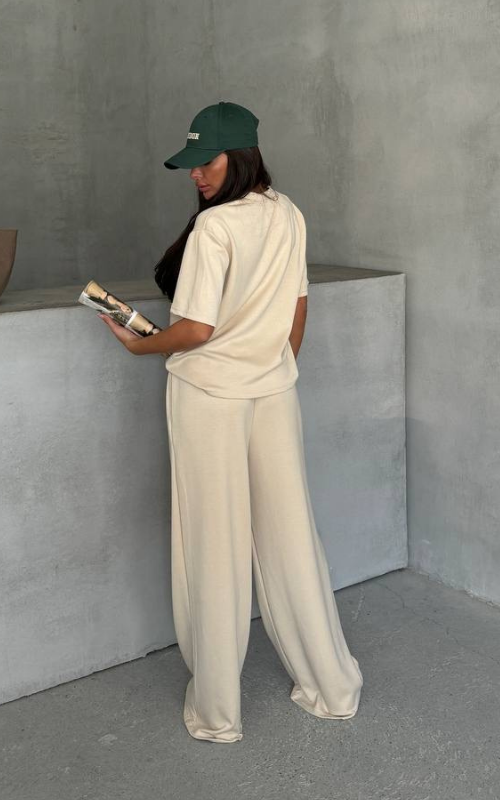 Roam around with a snug yet chic appearance with out Natalia Set, featuring an elbow drop-shoulder sleeved top and high-waisted, draw stringed bottoms.