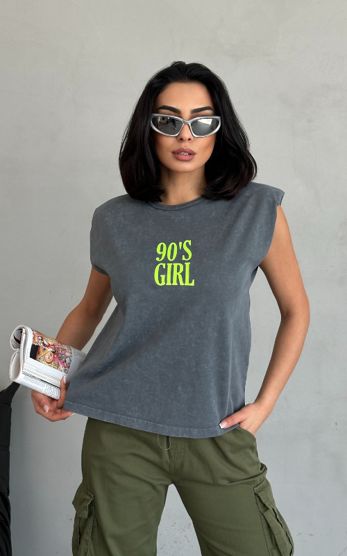 & Free ShippingOur Nineties T-Shirt is a sleeveless padded T-shirt featuring a crew neckline and a bold ’90’’s Girl’ print on the front, offering a trendy, retro-inspired look with a modern edge.
