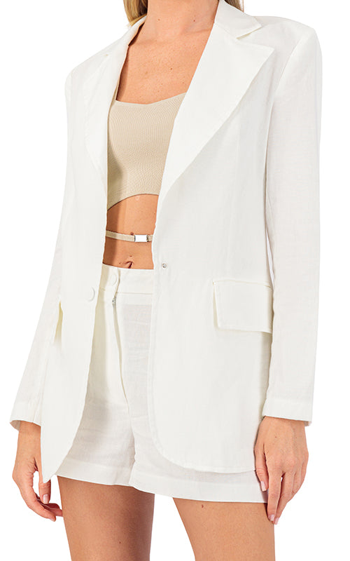 Take your new-season style to the next level with the Polished Poise Blazer! In a refreshing white color, this blazer will add a stylish edge to your look with its padded shoulders, crisp notched lapels and long sleeves.