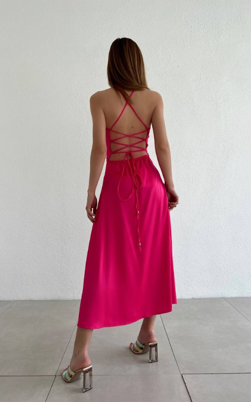 The Romantic Spot Dress is ultra-flattering with its sweetheart neck, bustier-inspired bodice and a thigh-high slit at front.