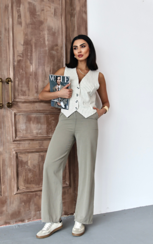 Tailored with a straight-cut silhouette, side pockets, and a signature wooden button, these pants bring effortless structure with a touch of natural charm.