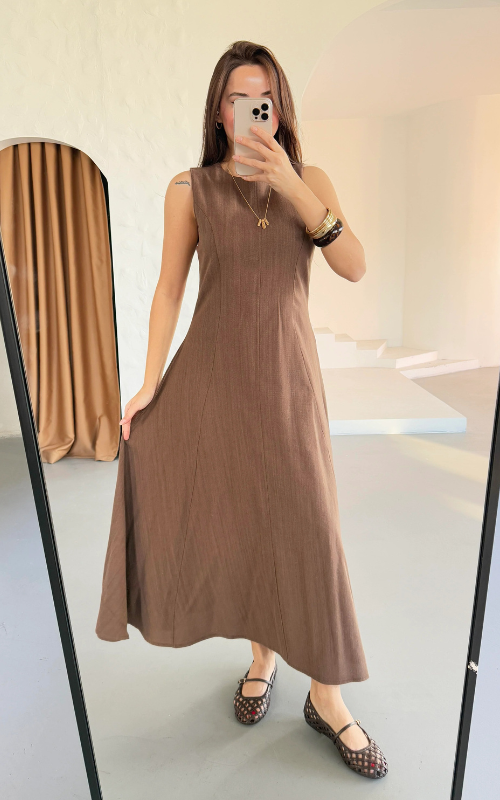 Crafted from quality fabric, the Selena Dress features a sleeveless A-line design, high round neckline and vertical seams that contour the body for a flattering fit.