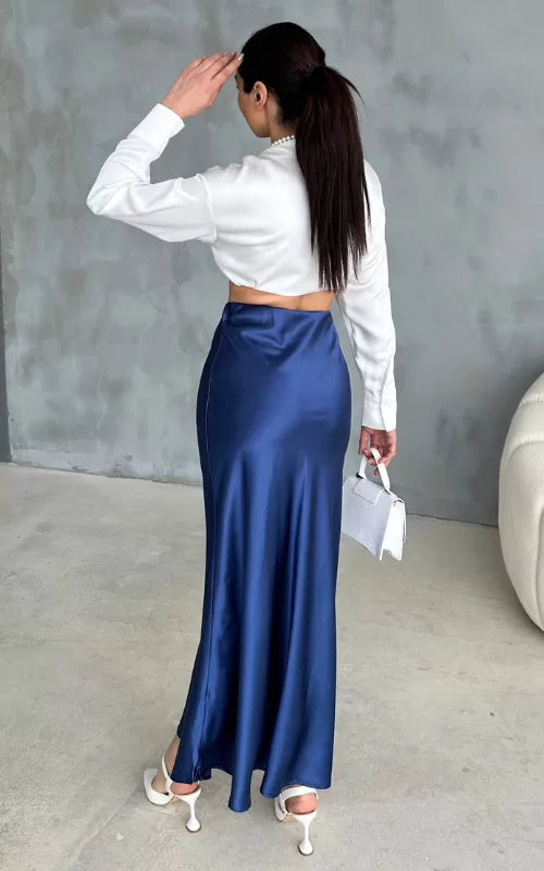 Flow into elegance with the Silk Serenity Skirt, a luxurious maxi that drapes beautifully for a graceful, timeless look.