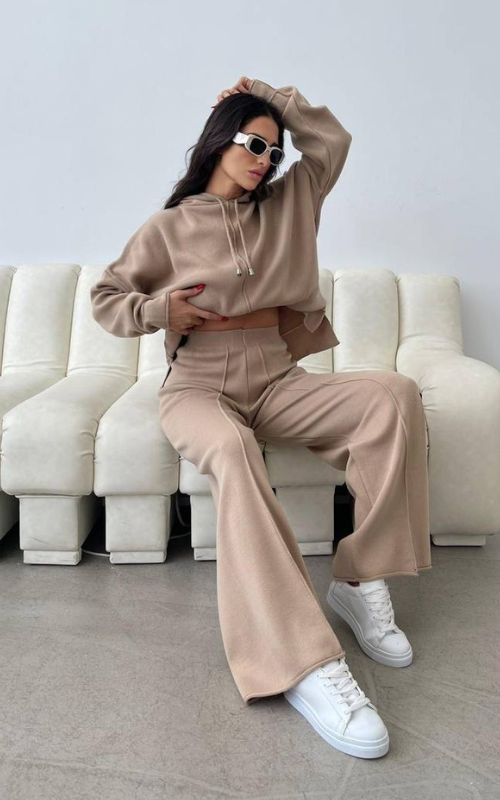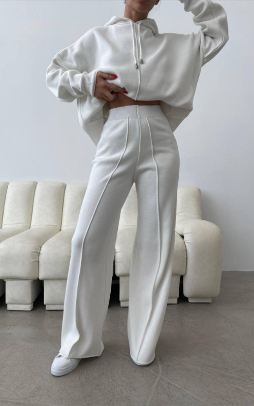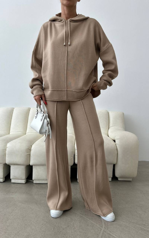 Perfect for chilly days, our Snugfit Set features a cozy hoodie with a drawstring and matching bottoms, both accented by sleek vertical lines.