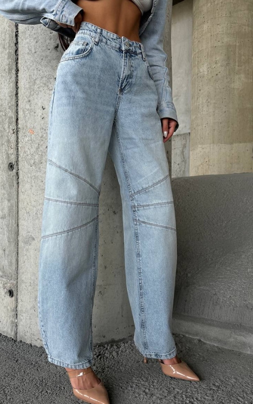 Our Urban Pants feature a mom jeans cut, a high-waist fit, and three edgy line details across the knees, creating a bold and fashionable statement.