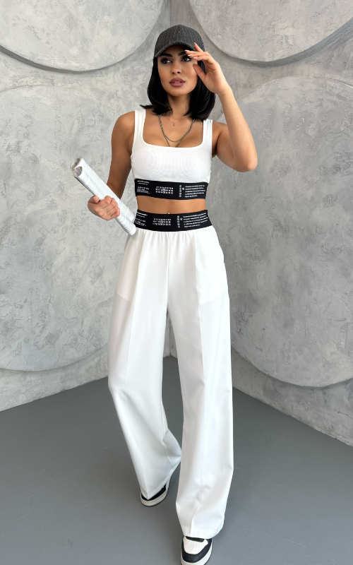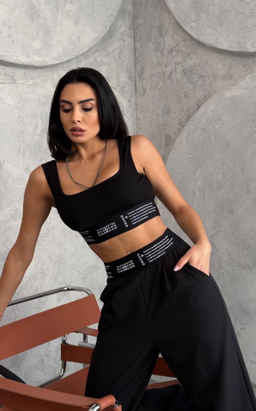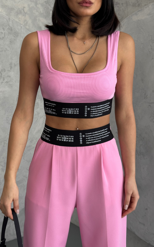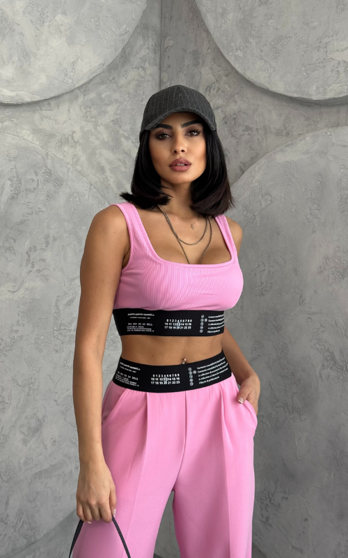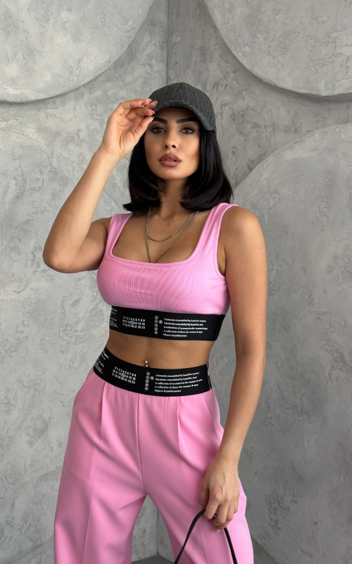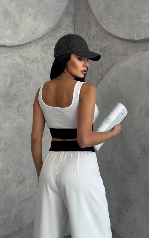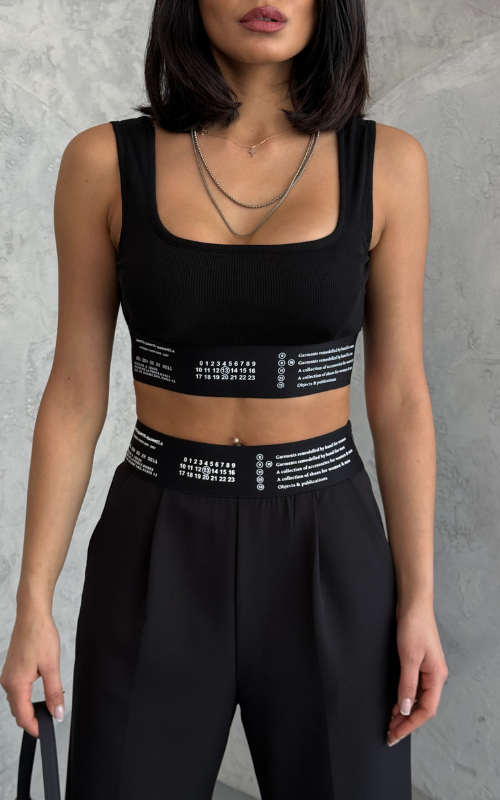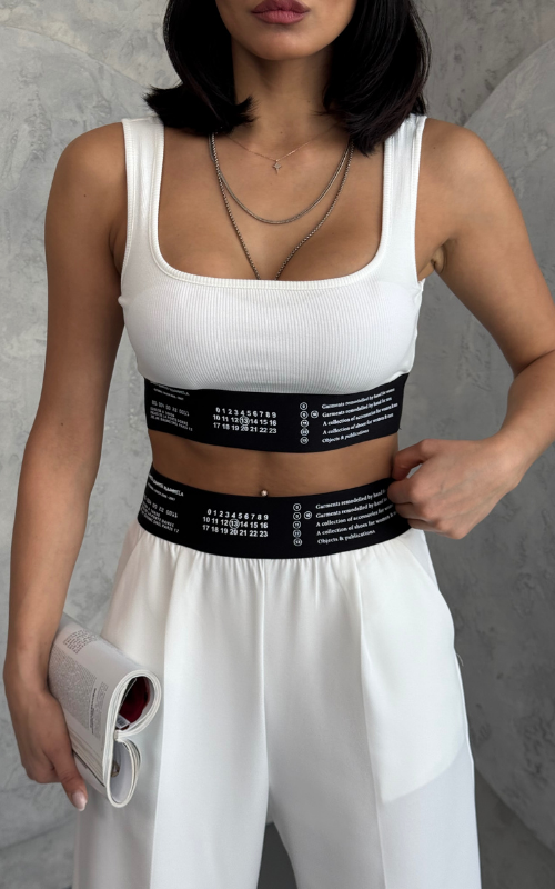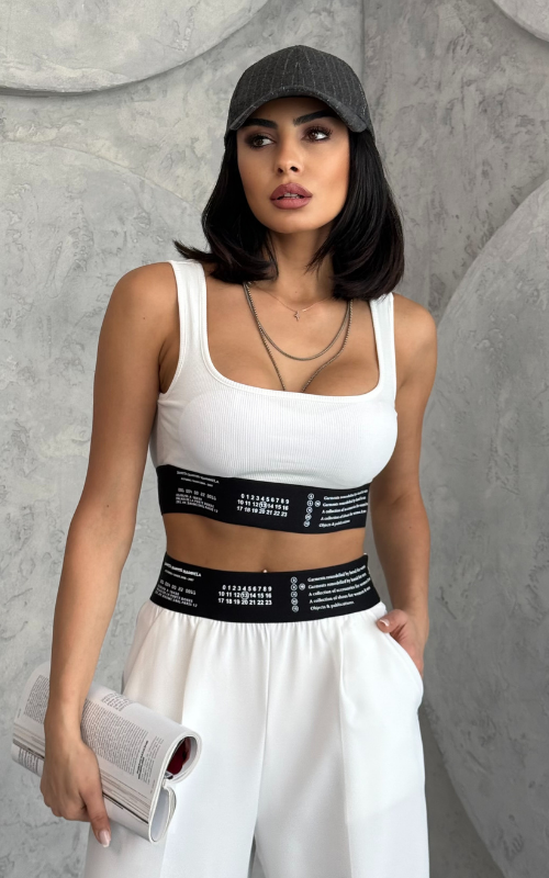 Our Varsity Crop Top Tank features ribbed fabric, a square neckline, and an iconic elasticized waistband that flatters the waist, combining sporty style with a sleek, modern fit.