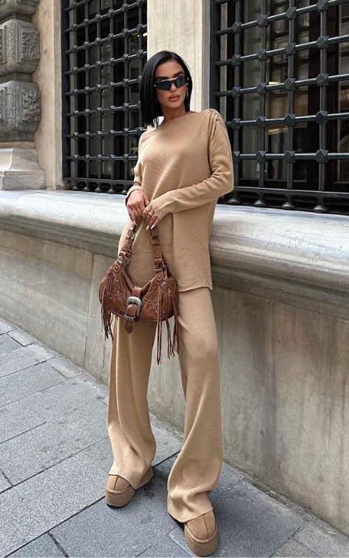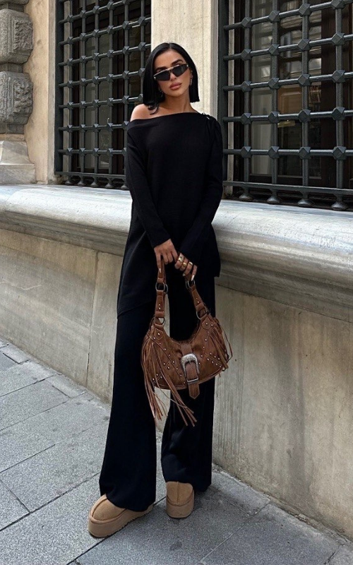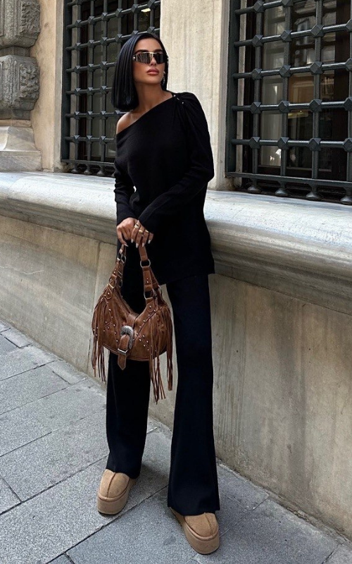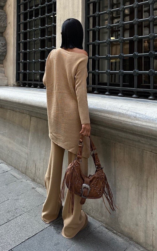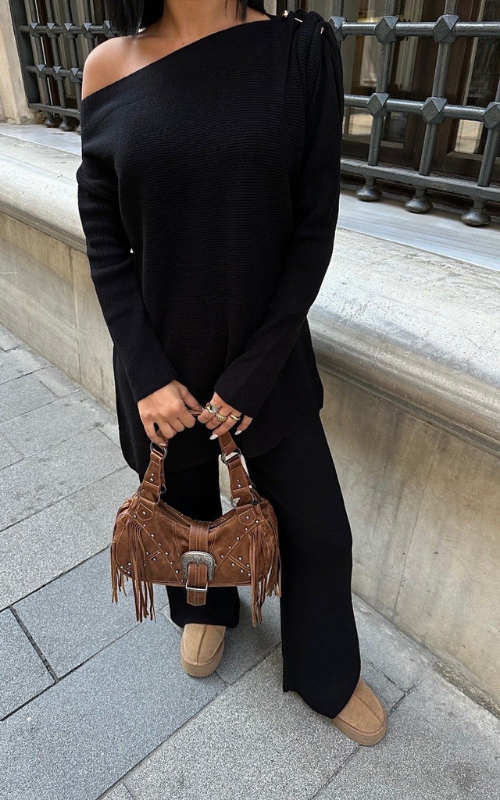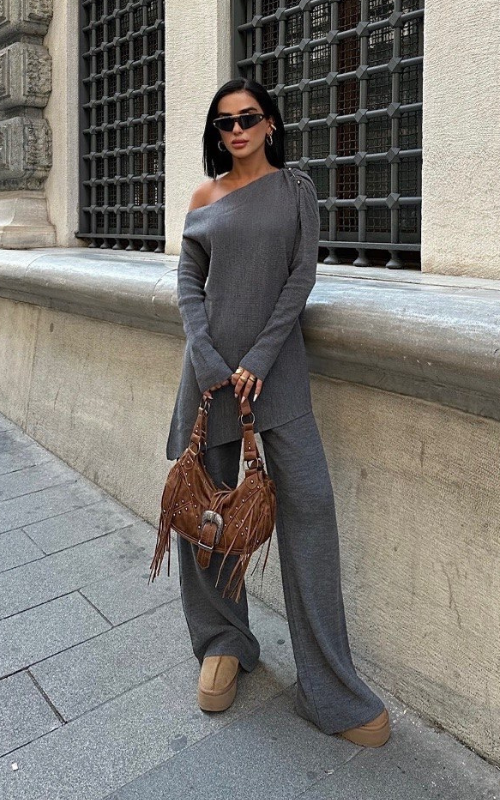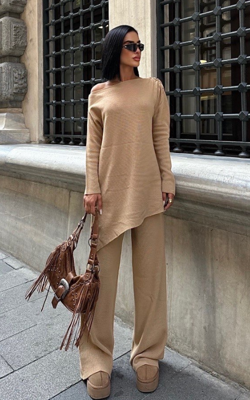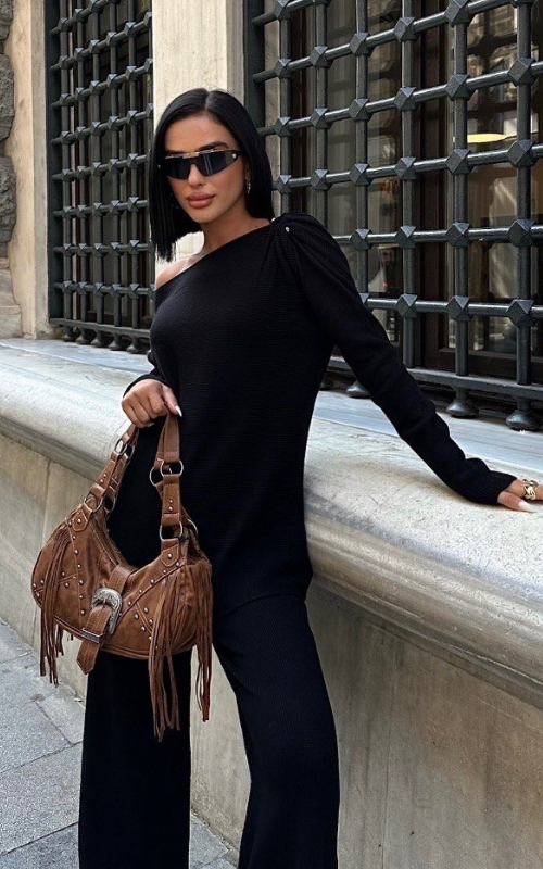 Standout this season with our Vienna Set, featuring an off-shoulder top adorned with ruched detail and stylish brooch, matching with flare-cut bottoms of luxe fabric.