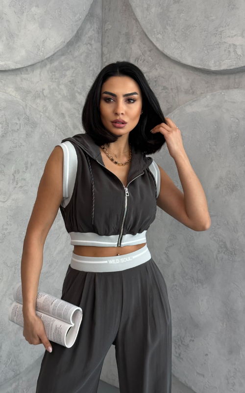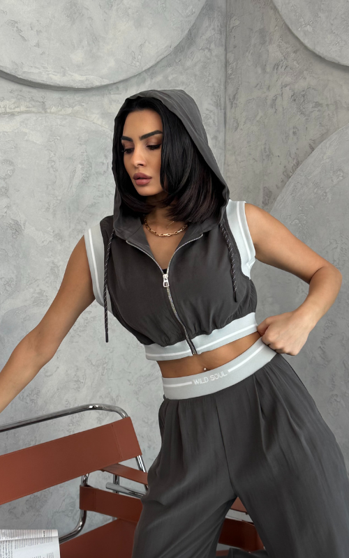 Get the trendy look with a touch of athletic charm with our Escape Top, featuring a zip-up hooded crop vest and a color-block design and striped detailing along the sleeve and waist edges.